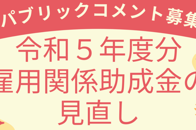 令和5年度分の雇用関係助成金の見直しに関するパブリックコメント募集が行われています